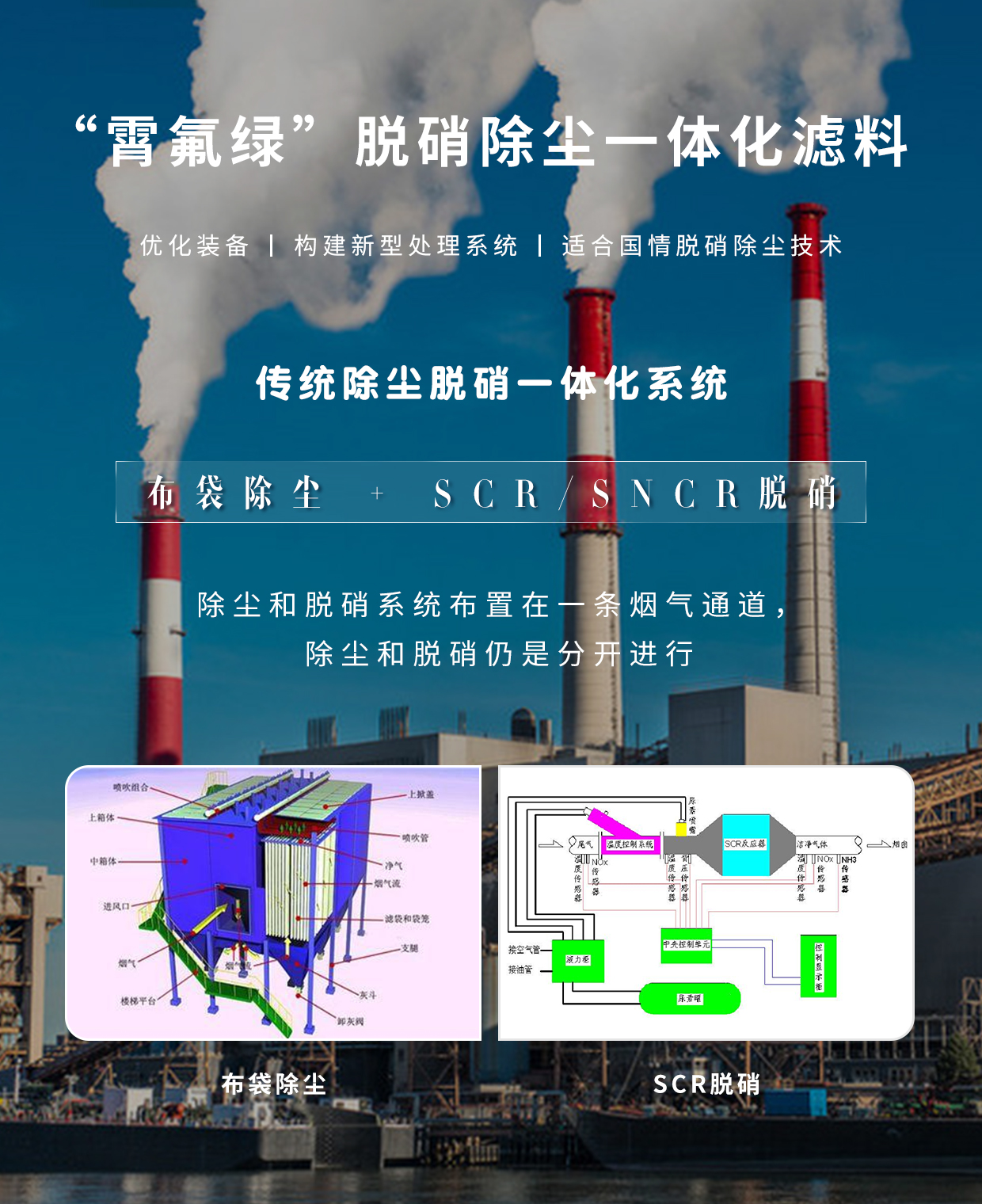 | 產(chǎn)品名稱 | 除塵脫硝一體化單層濾料 | 除塵脫硝一體化雙層濾料 | 除塵脫硝一體化覆膜濾料 | |